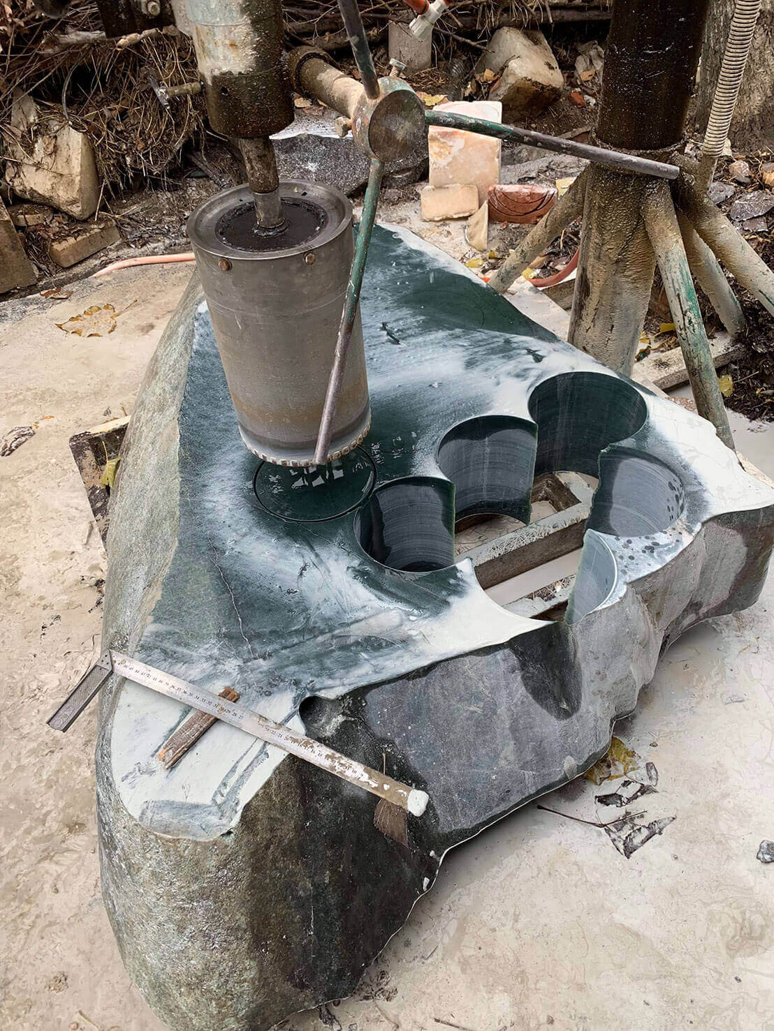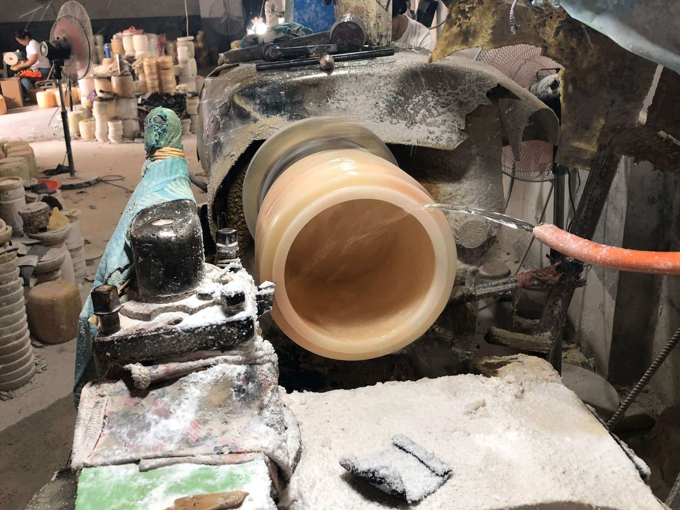 從原石挑選,進口回國,石材切砌,取原柱桶芯,到骨灰罈身蓋成型,骨灰罈的製作耗時且工序繁複的,所需耗時少則數月,多則一年以上,這是因為石材須經歷過運輸到港口進口,再加上石材不同軟硬度在加工上的難易度不同,然而為了給予客戶品質優良的骨灰罈,我們不敢馬虎任何一個步驟,憑藉著我們的專業和經驗,仔細審視著每一個加工流程。